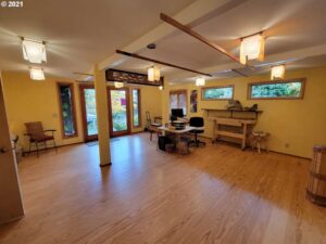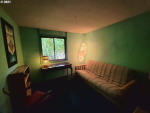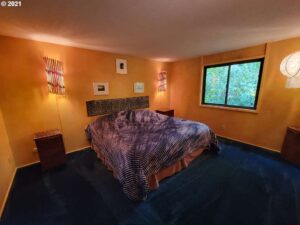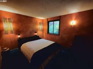 Recent price reduction. Spacious Mid-Century Modern home in prime South Hills Eugene location. End of road privacy. Fenced yard in natural setting. Exquisite views. Abundant Storage. Some updates and well maintained.Sunny South facing courtyard. Attached artist studio. Three bedrooms, 1.5 baths on main floor. Huge, bright lower level family room and 4th bedroom with full bath have separate exterior entrance. vaulted Ceilings, Wonderful Paint finishing on interior walls, Beautiful light sculptures throughout.